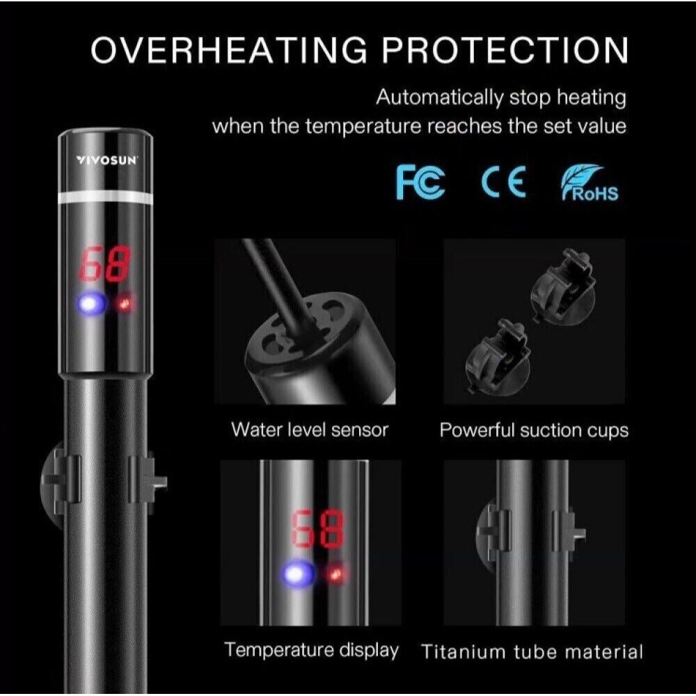 Submersible aquarium water heaters Stainless steel 500 W digital heater excellent quality. This item uses USA plug only. Any question please contact us. Thanks
